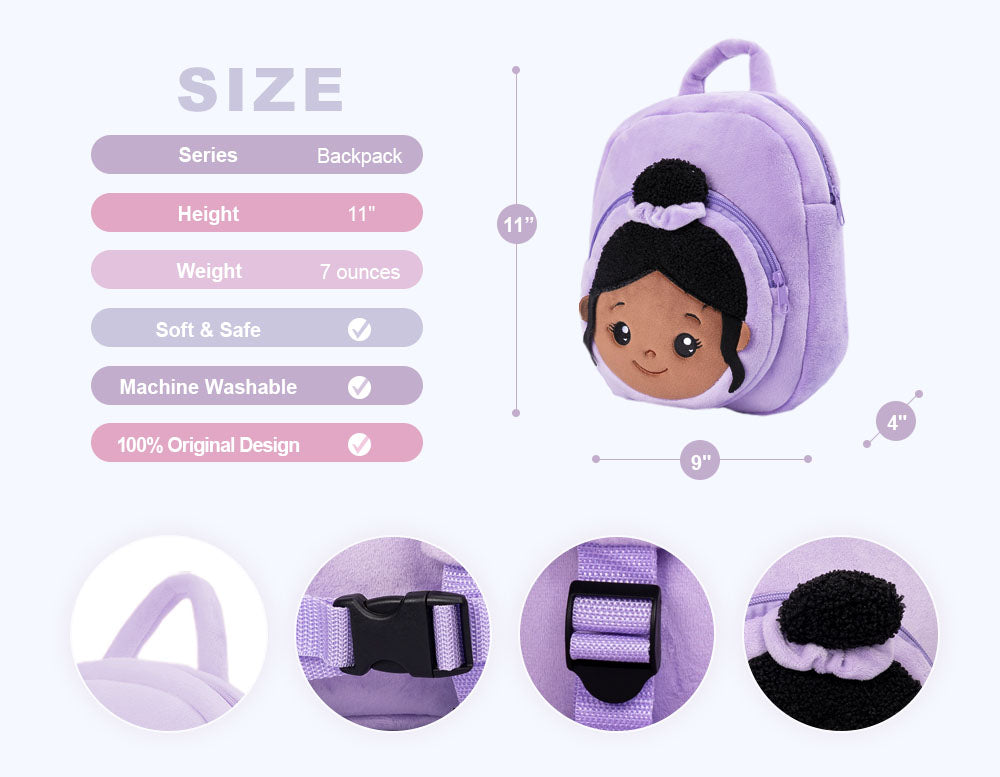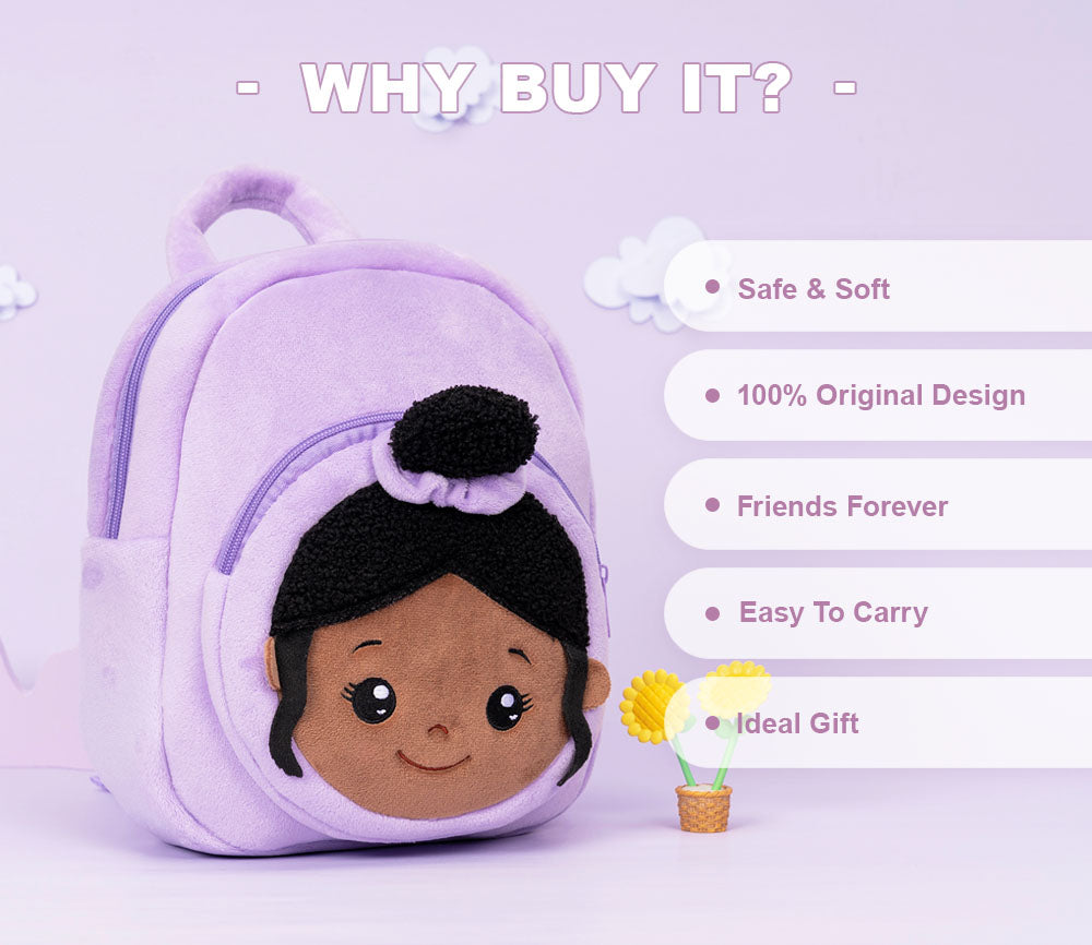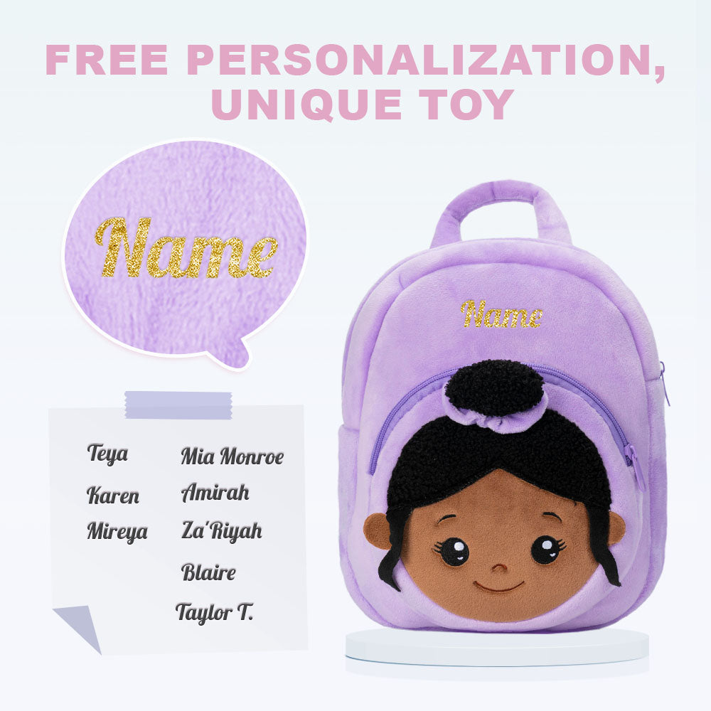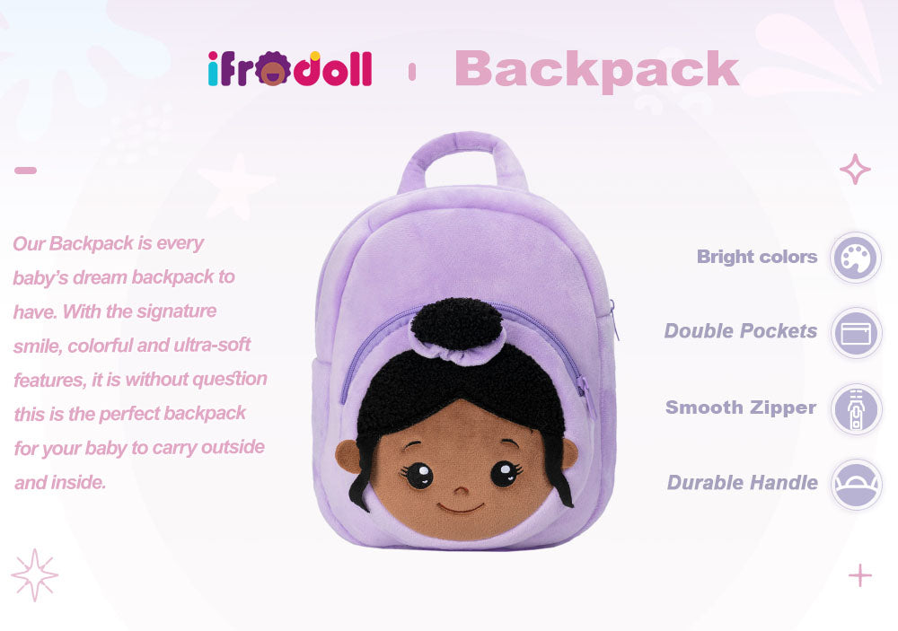 iFrodoll Personalized Deep Skin Tone Plush Nevaeh Backpack for Kids Purple