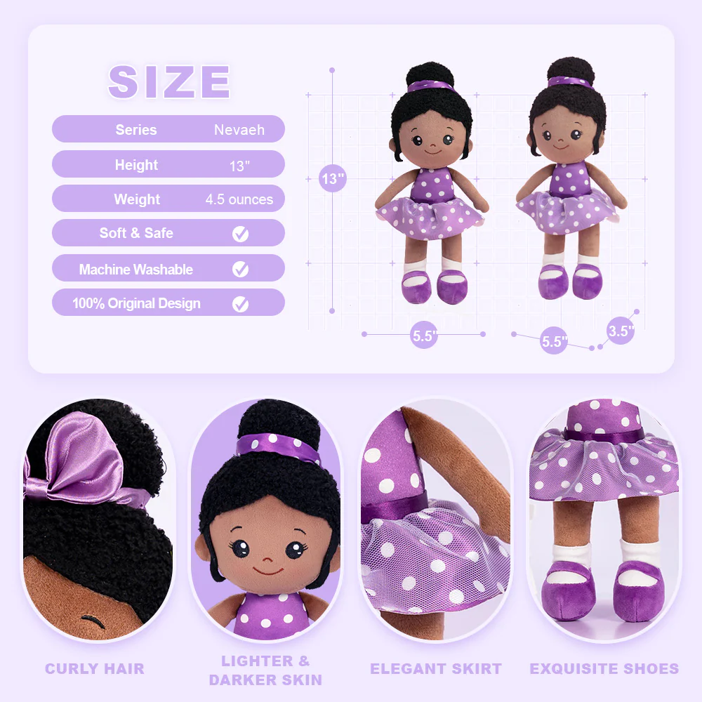 Our dolls are made of high-quality A-grade fabrics, which are super soft, safe, non-toxic, sensitive-skin-friendly, machine washable.