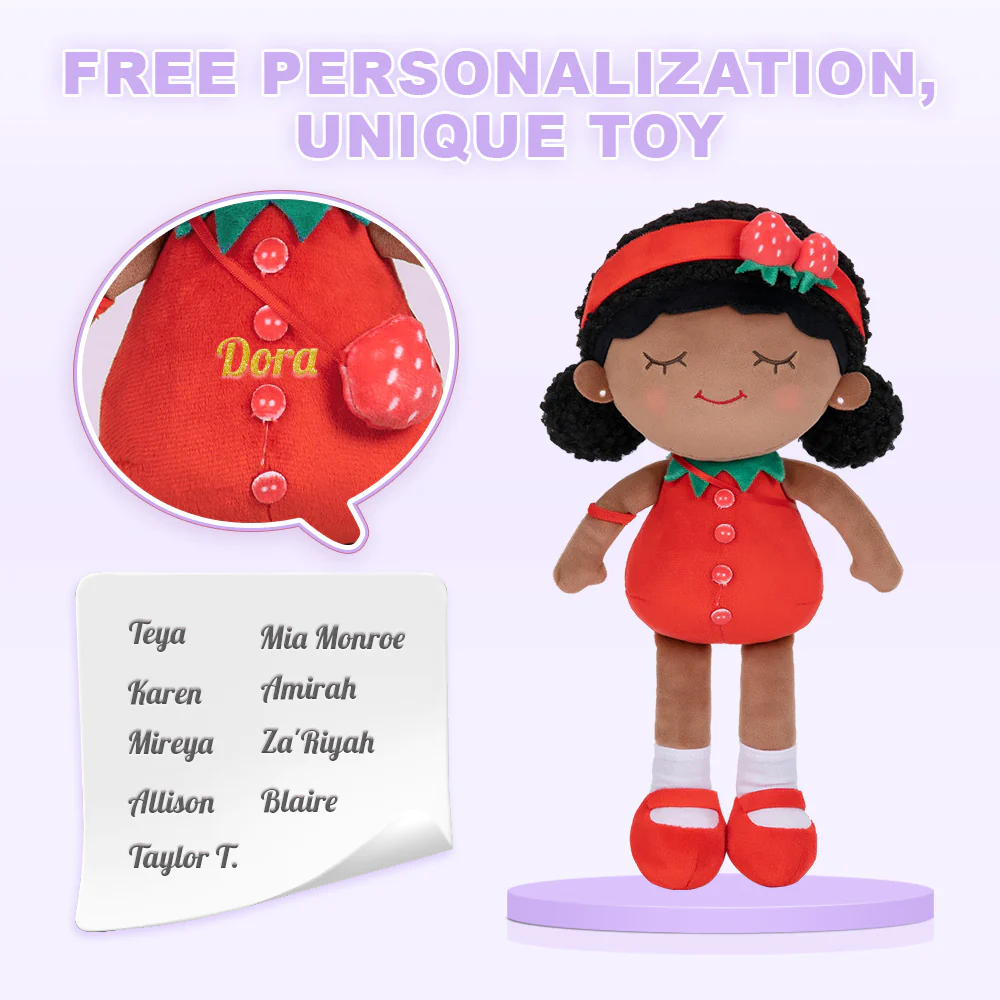 iFrodoll Personalized Deep Skin Tone Plush Strawberry Doll Red